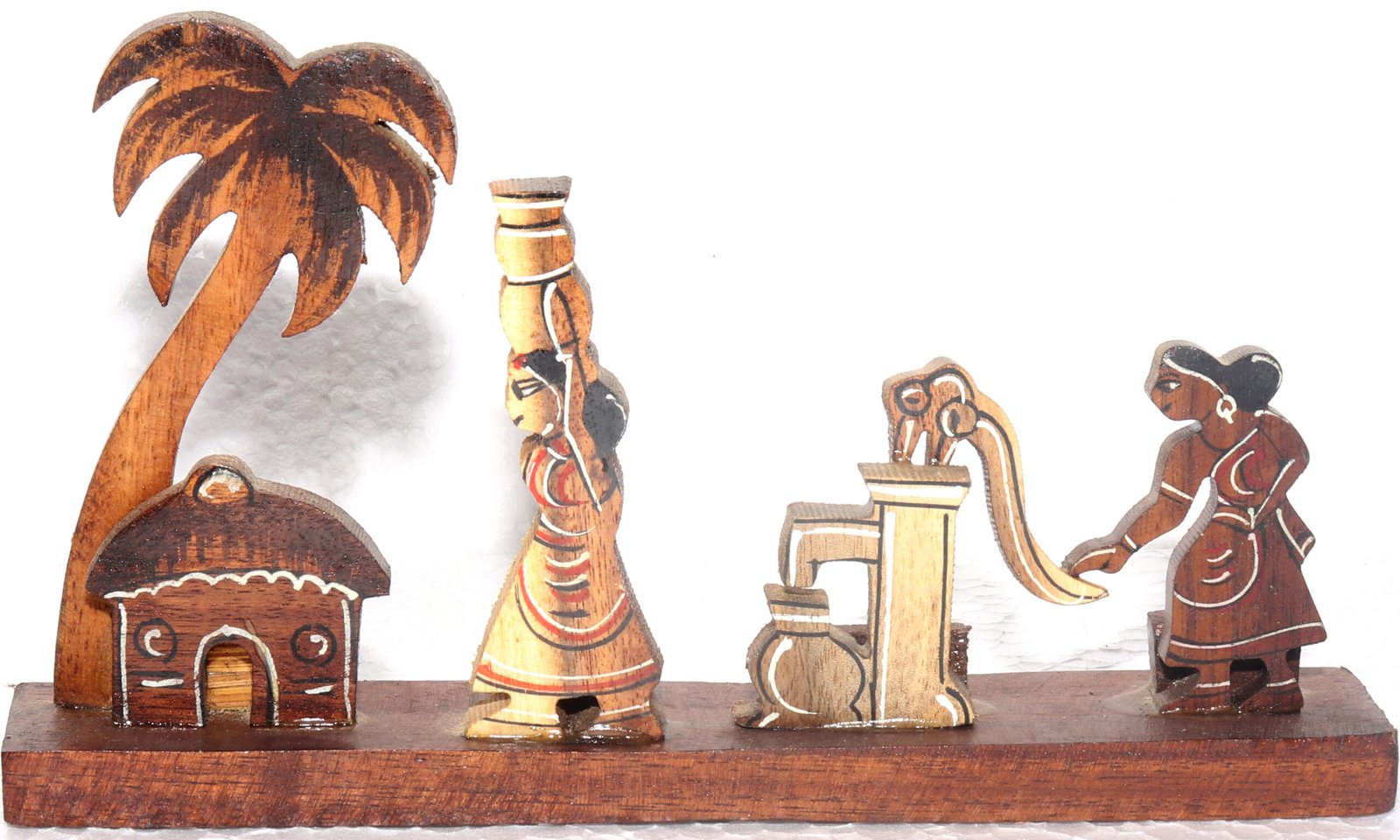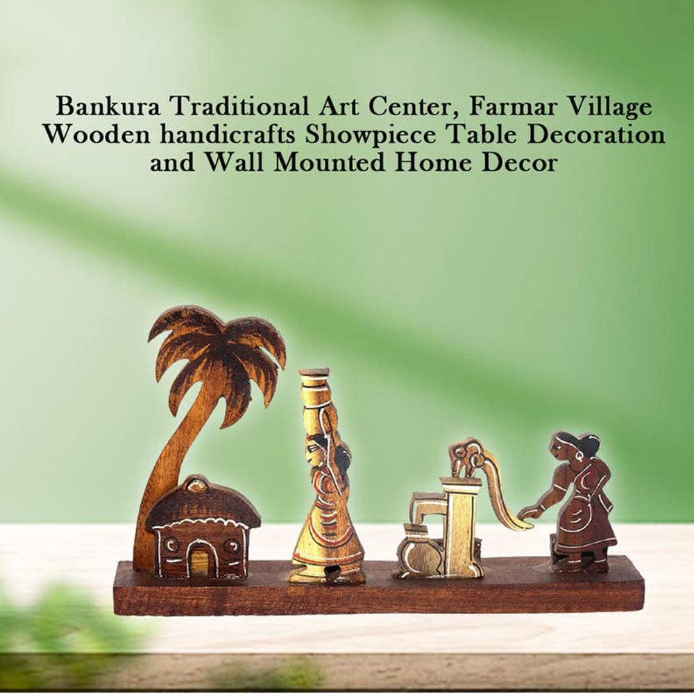 Bankura Traditional Art Center® , Farmar Village Wooden handicrafts Showpiece Table Decoration and Wall Mounted Home Decor Toy for Kids 18 cm Length , Clear ,1 in the box.